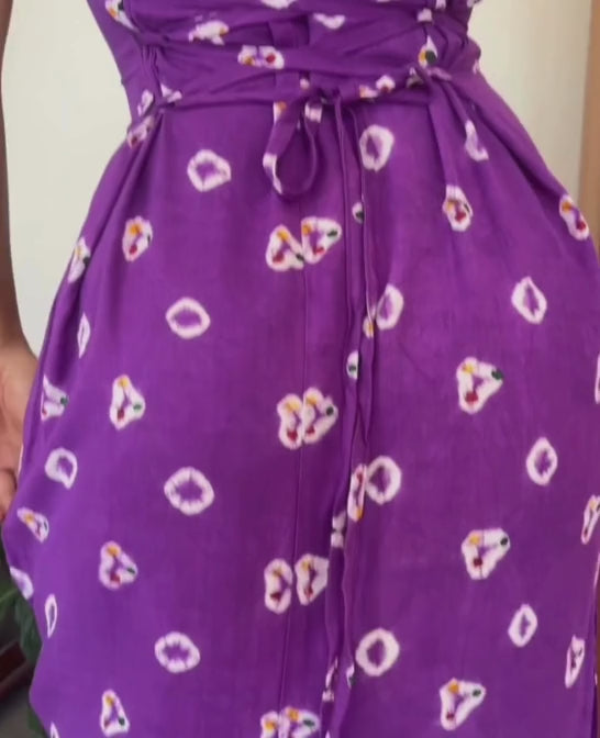Fabric 100% sustainable rayon. Jumputan hand dyed in Yogyakarta. Sweat absorbent & cooling.