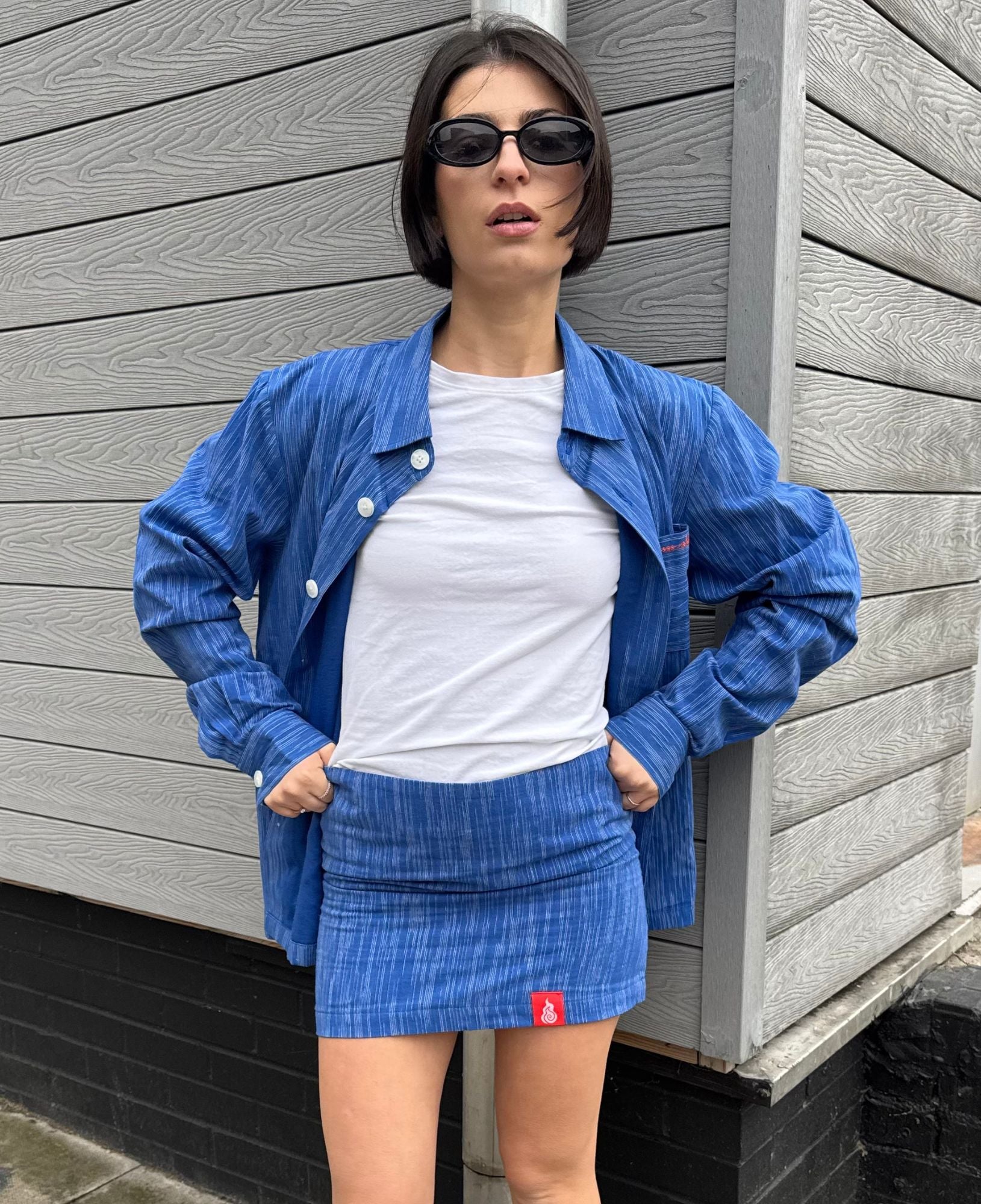 Fit Mini skirt, darted waist, form fitting. Get your usual size. Model wears M.